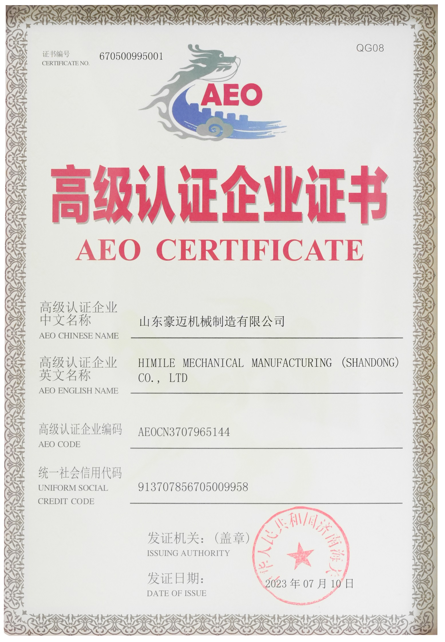 Founded in 1995, Himile is an international group company located in Gaomi City, the Blue Economic Zone of the Shandong Province, with total assets of 20 billion yuan and more than 20,000 employees. It has 1 listed company (SZ. 002595), 5 individual championships, and 8 overseas companies.